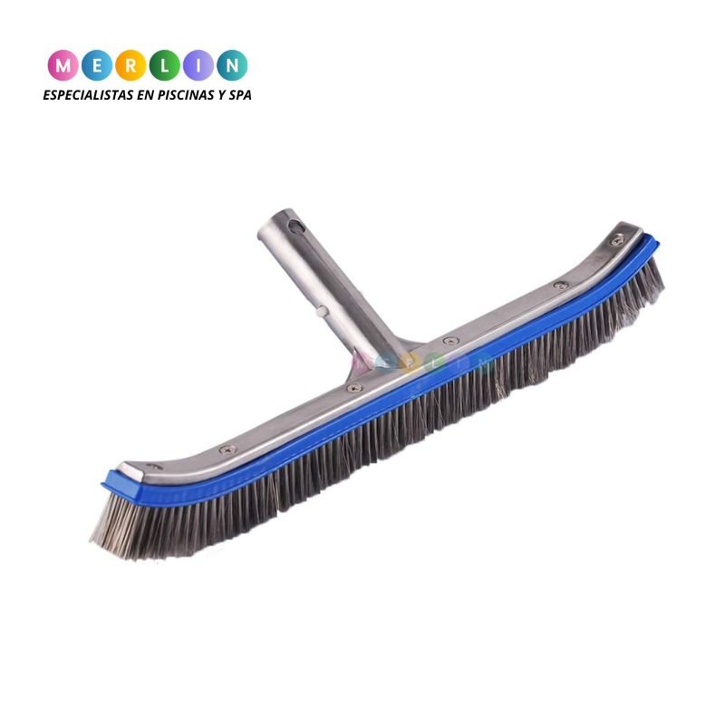 Cepillo de acero con mango de metálico de 18″ MERLIN ideal para limpieza de piscinas. Con el mantenimiento rutinario, su piscina lucirá limpia, cristalina y atractiva todos los días.